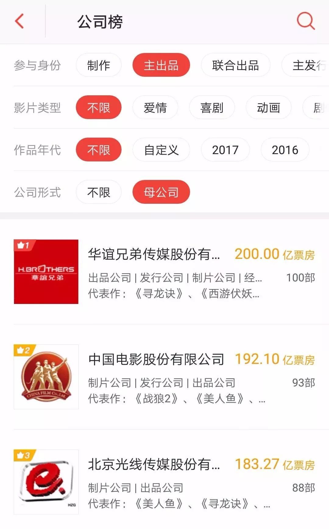 貓眼專業(yè)版公司票房排行榜,華誼兄弟名列第一