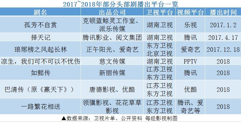 除了獨(dú)播外,衛(wèi)視更多采用多臺聯(lián)播來“攤薄”購劇成本,記者梳理2018年待播頭部劇發(fā)現(xiàn)《如懿傳》《巴清傳》《一路繁花相送》等均為雙臺聯(lián)播。