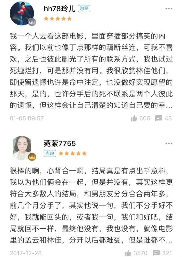 而“支持”《前任3》的,大多著眼于男女主的感情遺憾,認為情節現實,聯想到身邊人的經歷或者生活中的無奈。