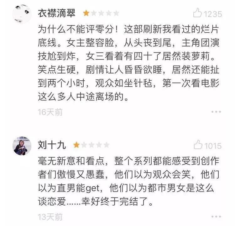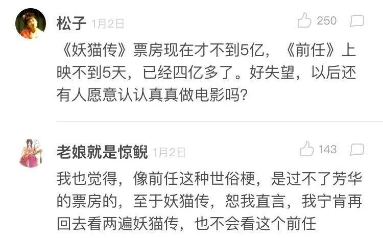 有人甚至認為《前任3》的票房是“對中國電影最大的侮辱”。