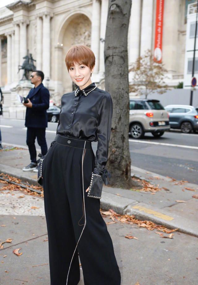 17年的時裝周更驚艷了大批群眾,黑襯衫闊腿褲,大膽嘗試新發色的短發,小粗腿不見了,氣場一米八。以前的甜美小公主在霸氣“總攻”的路上越走越遠。