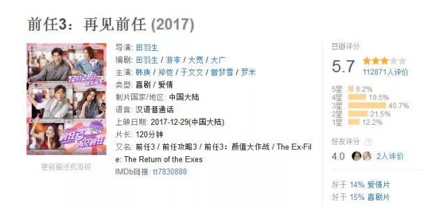 甚至有媒體痛心疾首地大呼“《前任3》毀了中國(guó)電影”,也有人力證覺得《前任3》不好只是“審美隔閡”,是三四線觀眾開始崛起。
