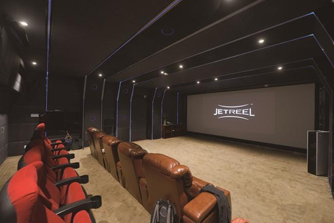 影音房空間定位為頂級專業(yè)標(biāo)準(zhǔn)私人影院,影音工程師設(shè)計采用全吸音打造完美聲場。