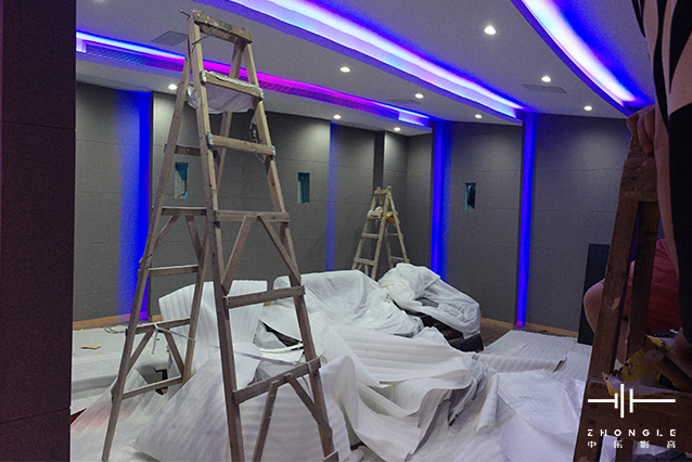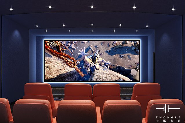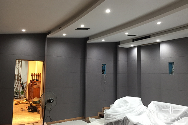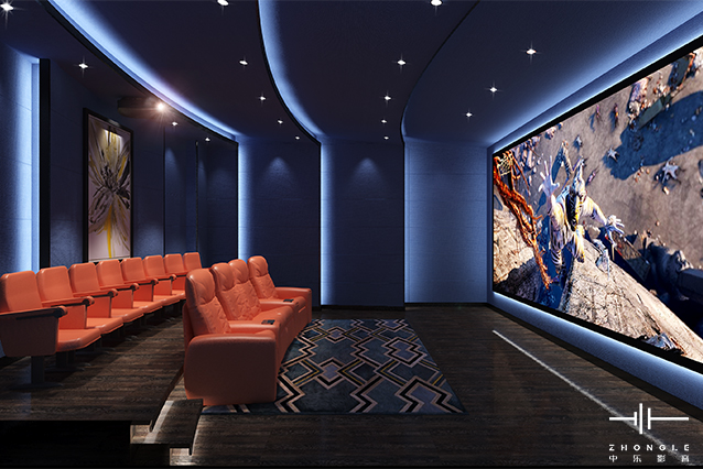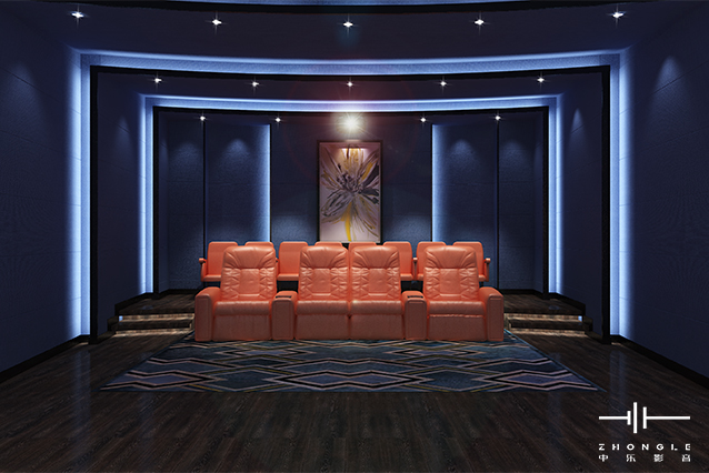藍色是塑造寧靜感覺的最佳色彩,大面積的藍灰色透聲幕沉穩(wěn)氣質(zhì),橘紅色沙發(fā)適度的緩解了空間高冷的氣息。被藍色包圍的意境和況味,因為生命或者歲月有了這樣的底蘊做基調(diào)。加上周圍燈光顯得整個空間有線條感和科技感。