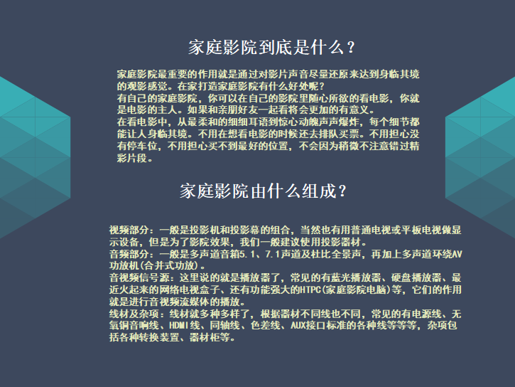 首頁 技術(shù)分享 家庭影院知識科普,現(xiàn)在咨詢即可獲得3999設(shè)計方案 家庭影院知識科普,現(xiàn)在咨詢即可獲得3999設(shè)計方案 2429天前 上一篇:私家電影院,您需要注意的5點(diǎn)! 下一篇:私家電影院音箱選購技巧,看好了就下手! 熱門推薦 家庭ktv音響選多大的喇叭好? 2025-09-05 14:20 教你5招解決視聽室隔音問題 2021-09-01 17:02 立體聲與視聽室不為人知的小秘密 2021-09-01 16:34 夏季高溫,這樣使用影音室投影機(jī)是錯誤的! 2021-07-14 14:20 某頂級豪宅—AURO3D院線同步案例 2019-04-17 09:22