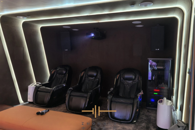 銀幕系統:選用Harkness(哈克尼斯)全球頂尖銀幕,其微孔透聲設計與高增益特性,完美匹配4K投影,實現畫面與聲音的無縫融合,為觀眾營造360°環繞式觀影環境。